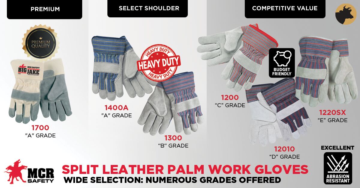 Big Jake® gloves, the ultimate in leather hand protection, are used in heavy-duty and rugged environments and made tough for the most demanding jobs! Constructed of heavy premium A+ grade split side cow leather and sewn with Dupont™ Kevlar®, these gloves will help you work through the roughest situations. An 8-ounce jersey palm lining, cotton canvas back, and rubberized safety cuff keep your hands cool, comfortable, and safe while you work. Go big with Big Jake®! (Available in Vending Packaged option - Item VP1700).