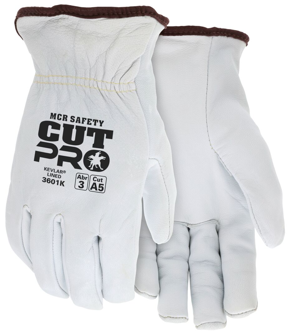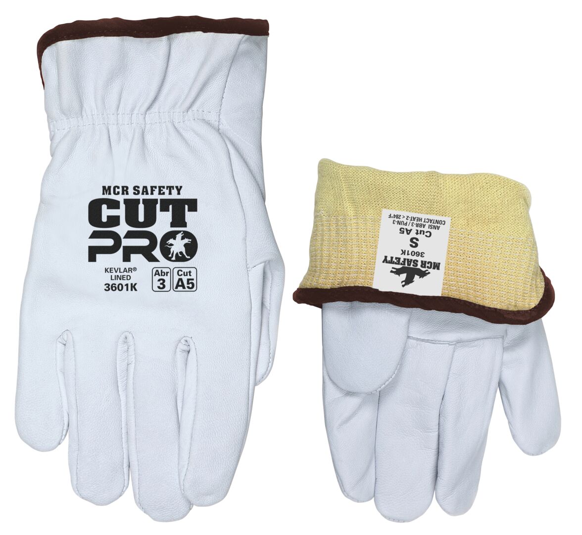 Known for its softness and flexibility, goatskin leather stands out as an exceptional choice for crafting gloves. Ideal for various applications, it effectively combines comfort with superior dexterity. Despite its soft nature, goatskin leather boasts impressive durability, providing resistance to wear and tear even with consistent use. The inherent natural lanolin content contributes to a soft feel and enhances the leather's longevity. The 3601K is lined with a 13-gauge DuPont™ Kevlar® aramid and synthetic liner that provides outstanding cut resistance. It also features premium A grade grain goatskin leather, a shirred elastic back, and a straight thumb. This combination of features results in gloves that provide optimal tactile sensitivity, making them a perfect blend of flexibility, comfort, and quality. If you are looking for the best FR leather glove options, look no further than MCR Safety!