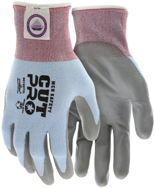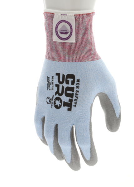 One of the most distinguishing characteristics of Dyneema® fabric is its cool-to-touch property. This fiber's inherent ability to dissipate body heat and pass moisture from the inside of the glove to the outside results in longer wear time, which promotes greater hand protection. The 9672DT2 features an 18-gauge light blue Dyneema® Diamond Technology shell with a thin but tough gray PU coating on the palm and fingertips. This glove's cut-resistant properties, high dexterity, and sense of touch make it a perfect option for your long workday. Are you looking for the best cut-resistant gloves? Look no further than MCR Safety's CutPro® cut-resistant options.
