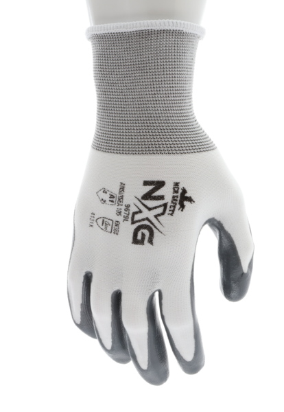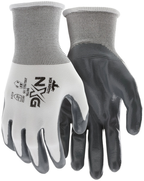 The next generation of gloves requires the next generation in manufacturing. MCR Safety’s state-of-the-art manufacturing facility produces premium NXG® brand gloves with advanced coatings, utilizes 21st-century manufacturing efficiencies, and does so with environmentally friendly production methods. Our NXG® styles are well suited for multi-industrial applications that require high dexterity and comfort and are manufactured on seamless knit liners that are flat dipped to reproduce the natural curved shape of the hand. As a result, workers benefit from less hand fatigue and greater productivity while performing detailed tasks to heavy duty jobs. The 9679 features a seamless 13-gauge white nylon shell and gray nitrile coated palm and fingertips that will enhance gripping power. If you are looking for the best work gloves, be sure to check out MCR Safety's NXG® options!