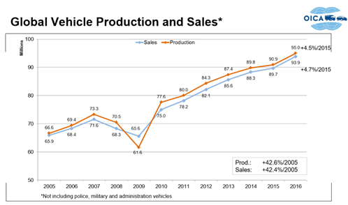 You hear a lot in the news today about how automotive manufacturing is leaving the U.S. Well, one may want to also pause and reflect on the fact that this is happening as worldwide production is at an all-time high. In 2000, there were 58 million vehicles produced. In 2018, there was a total of 95 million vehicles produced. That is over 38% growth during an eighteen year period