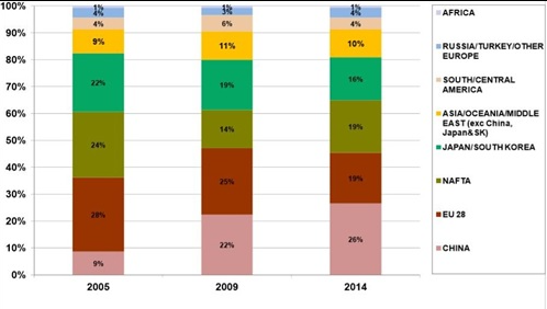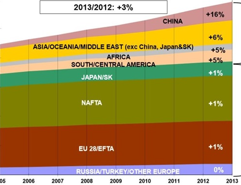 New Vehicle Sales Shares by Region Vehicles in Use: Growth by Region