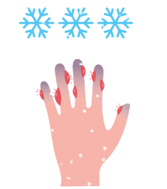 Exposed skin may be red from increased blood flow or have a bluish tinge.