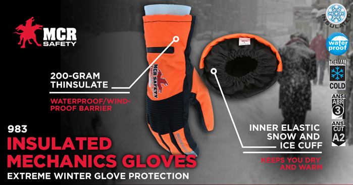 If you work outdoors in the winter, in the rain, around water, or in the wind, MCR Safety makes several styles of waterproof winter work gloves that work to keep cold, wet moisture away from hands, ensuring greater heat retention.